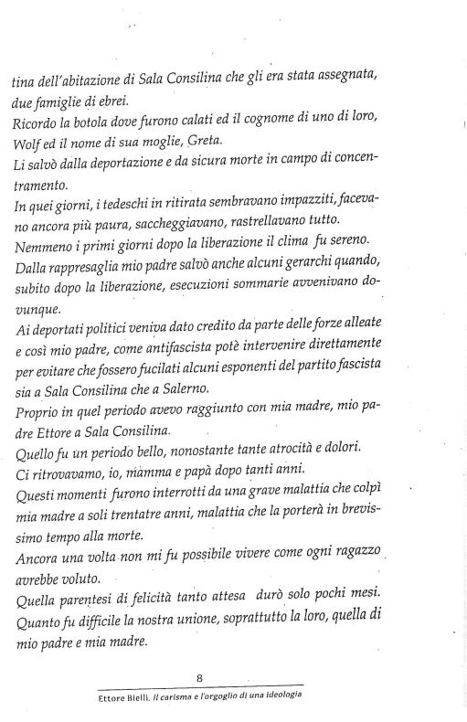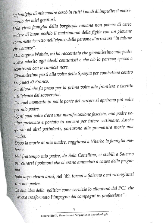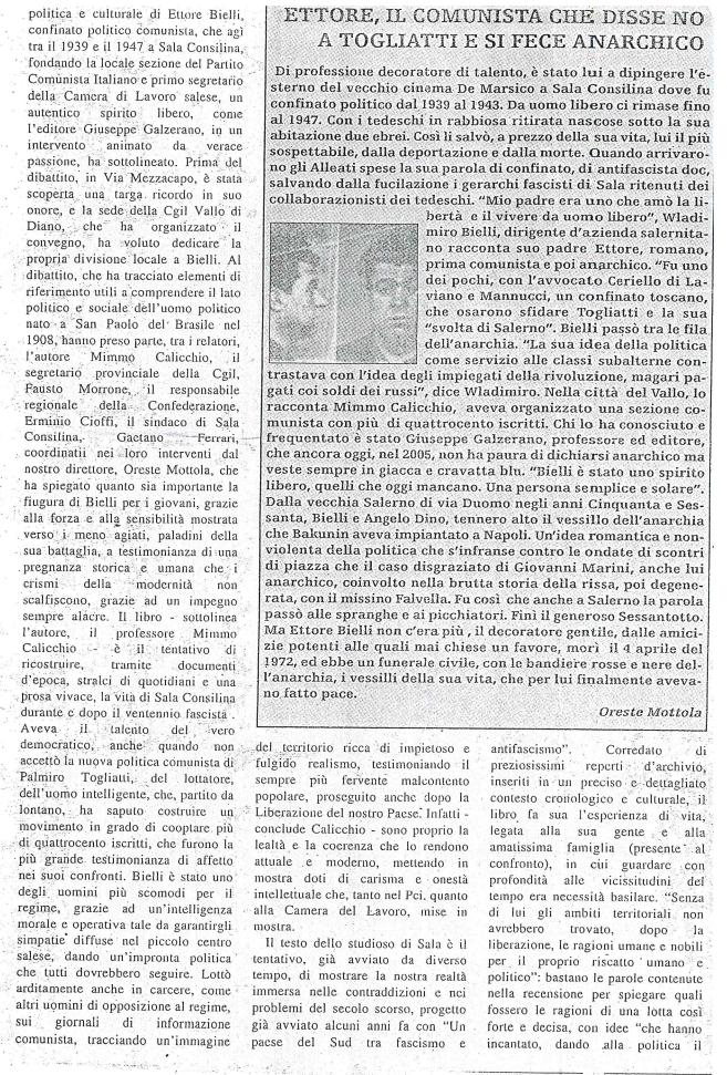 Parlare di Bielli vuol dire anche per le nuove generazioni ricordare che Salerno divenne sino alla metà anni 80 un vero laboratorio politico dove il gruppo anarchico Ettore Bielli ebbe un ruolo determinante sia nelle occupazioni di case come quella di Santa Margherita (quartiere popolare di Pastena che risultò essere la seconda Occupazione di casa vincente e in Italia) che nell’ antifascismo militante riuscendo a liberare la Zona Orientale di Salerno non solo dalla presenza dei fascisti ma impedendo alla destra sociale di attecchire nei quartieri proletari.